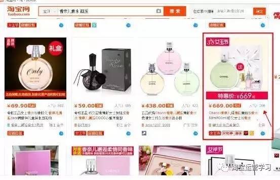 然后我们再来看看竞品的销量,拿 香奈儿香水邂逅 举例,好比说我的是正品,600-1000元的,那么去找一找。