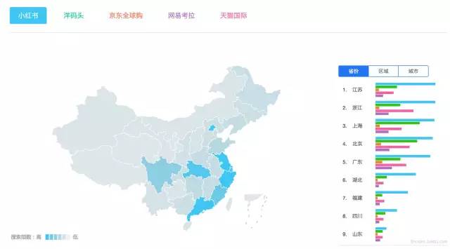 今年的黑色星期五小红书在江浙沪三地的表现最为抢眼,洋码头则主要集中在上海北京,网易卡拉深入挖掘浙江本土优势。